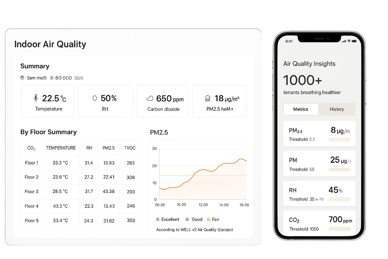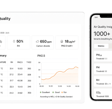 Monitor critical parameters such as CO₂, VOCs, and humidity in real-time using our intuitive web interface. The platform gives you instant alerts, generates automated reports, and helps you meet all your certification requirements.